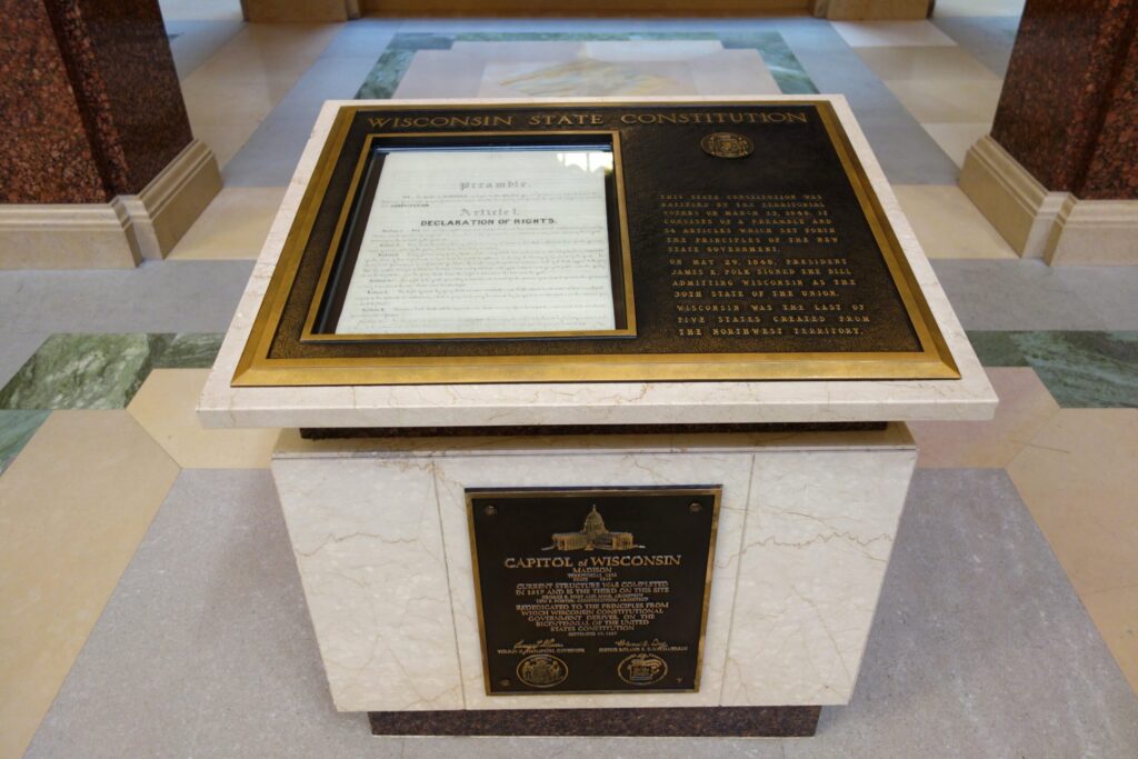 “We, the people of Wisconsin, grateful to Almighty God for our freedom, in order to secure its blessings, form a more per- fect government, insure domestic tranquility and promote the general welfare, do establish this constitution…”
